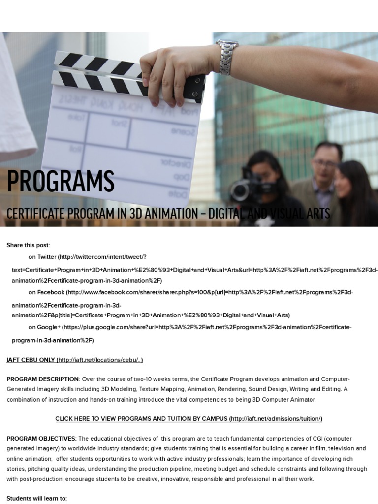 A 3d animation certificate program gives students practical hands on training in computer graphics and animation for a variety of mediums such as internet web pages video games printed. Part time students have a maximum of five years to complete the program. Enter the workforce quickly. Entry level positions available to program graduates include character animator animation rigger and modeler.