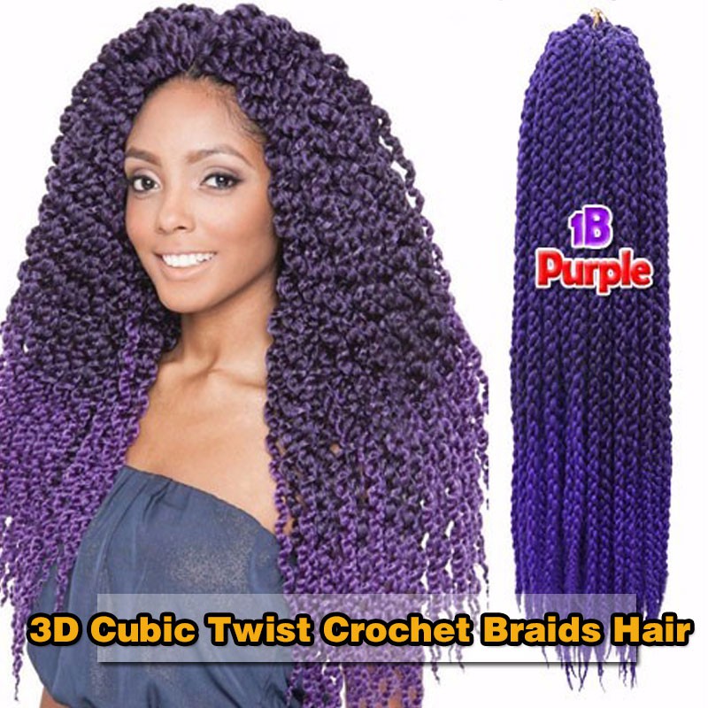 Generic 1 Pack 4 3d Cubic Twist Crochet Braid Hair 22 Ombre Synthetic Box Braids Hair Havana Mambo Twist Amir Purple Braiding Hair Fast Hair Amazon In Beauty