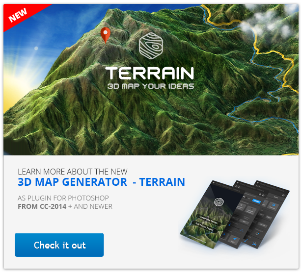 My favorite terrain generator. From a grayscale heightmap to 3d terrain all you need is photoshop with the 3d map generator terrain you can easily create a grayscale heightmap and then generate a 3d terrain out of itthe extensive features of our plugin are real time savers for creatives who want to create professional and high quality maps in no time. 3d map generator terrain from heightmap v14 20244806 may 14 2018 cc 2014 layered psd transparent png jpg image photoshop abr photoshop asl photoshop jsx. Available for pc and mac as plugin from photoshop cc 2014 and newer.