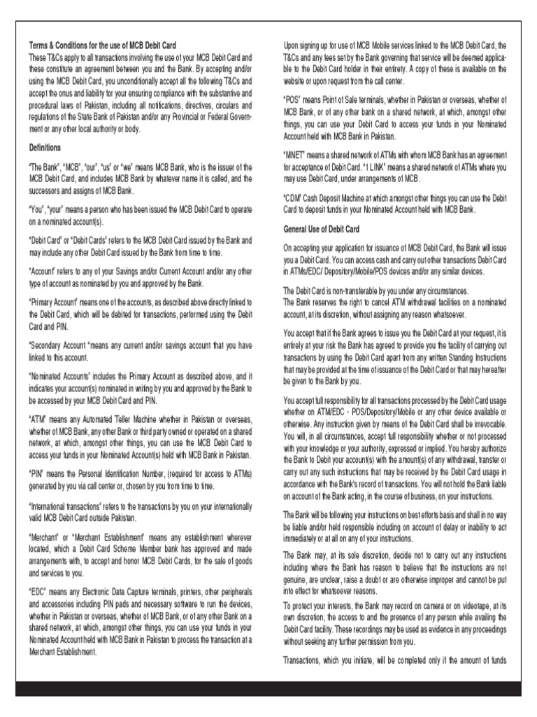 Get an mcb debit card today it will allow you to shop with no limits and withdraw funds from any atm. Apply for your debit card at any mcb branch. 26 feb 2020 in order to ensure the best and most secure browsing experience on our various websites you are kindly recommended to update your browser to one of these. This is the 3 digit number printed on the signature panel on the back of your mastercard debit card.