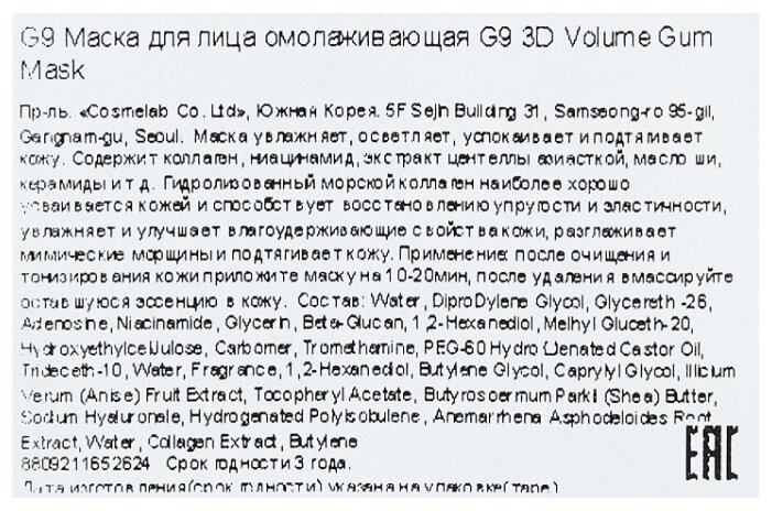 Mặt Nạ Dưỡng Da 3d Volume Gum Mask G9 Skin Của Han Quốc