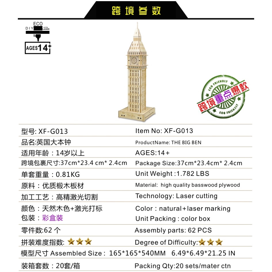 Build Your Own Big Ben Wooden 3d Puzzle Model Making Kits At