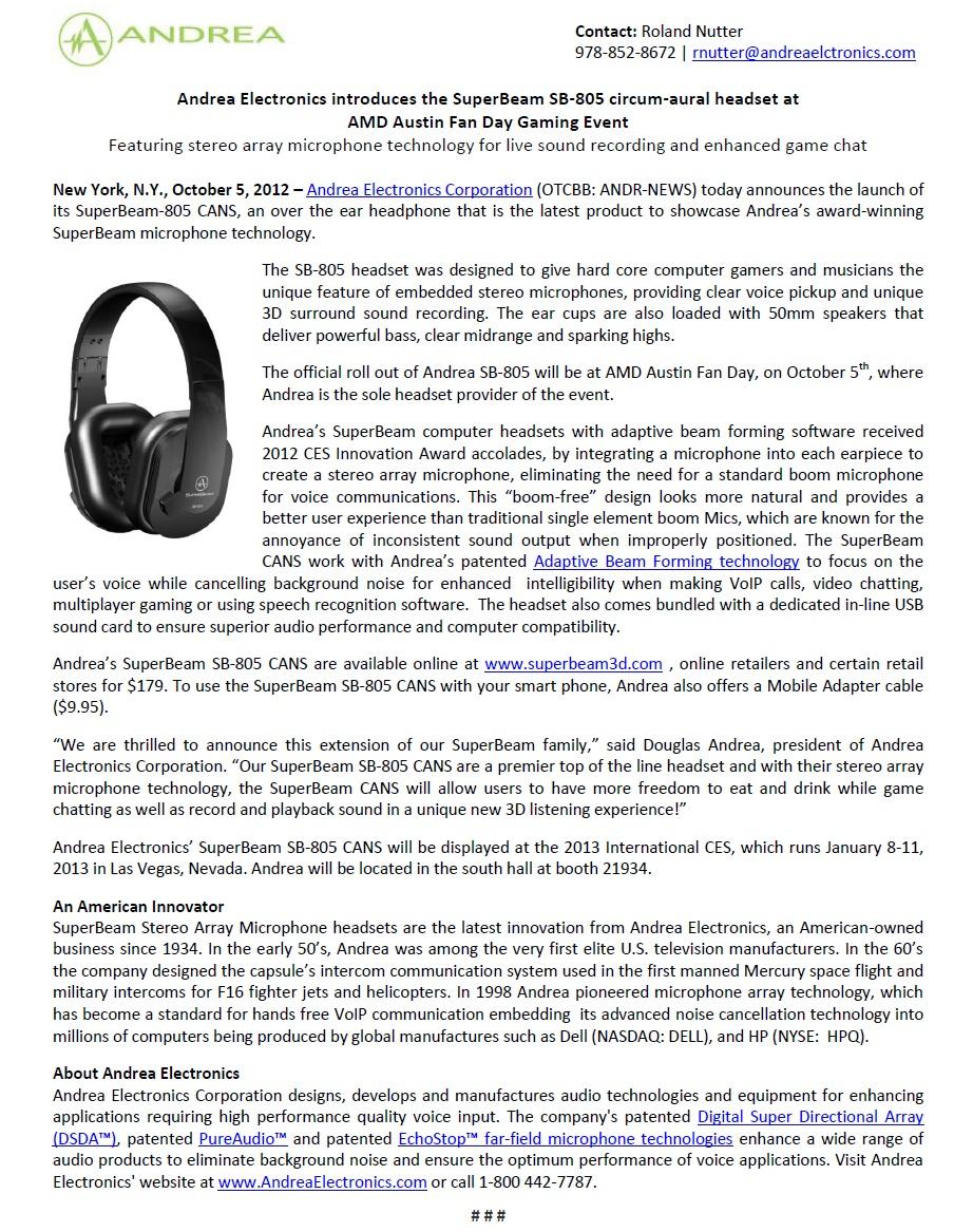 Andrea Electronics Sb 405b User Manual 1 Page