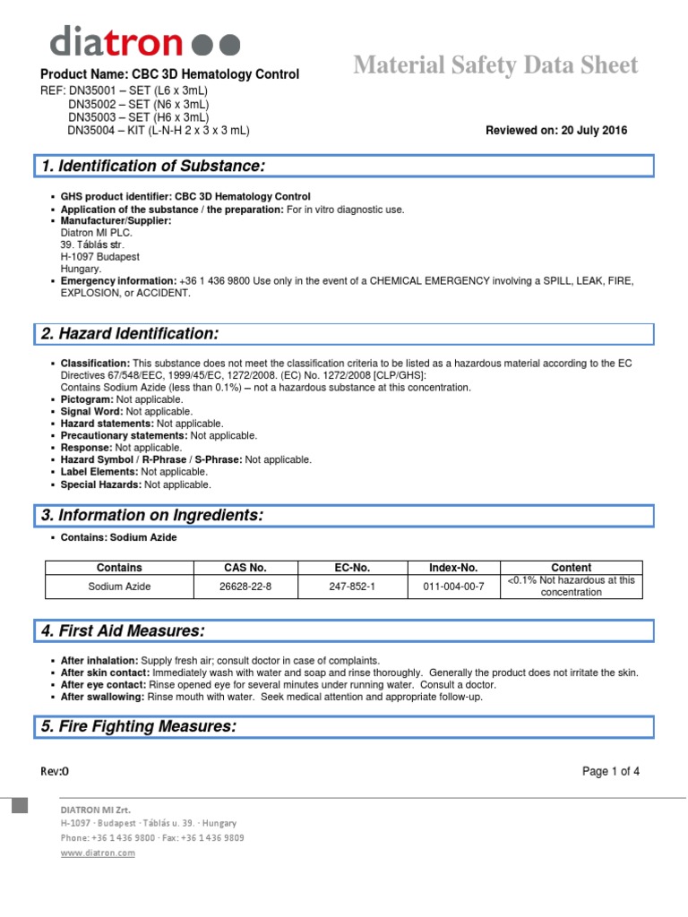 Msds Diatron Cbc 3d Personal Protective Equipment Toxicity