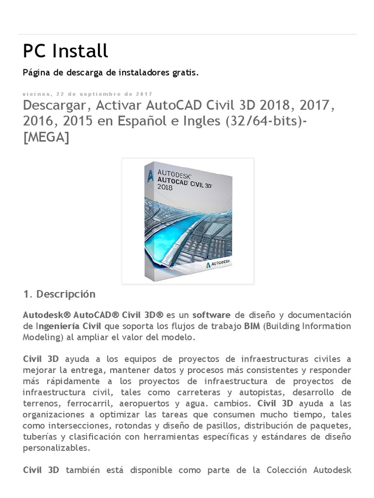 Descarga E Instala Autocad Civil 3d 2018 64 Bits Full Youtube