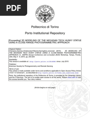 3d Modeling Of The Michigan Tech Husky Statue Using A Close Range