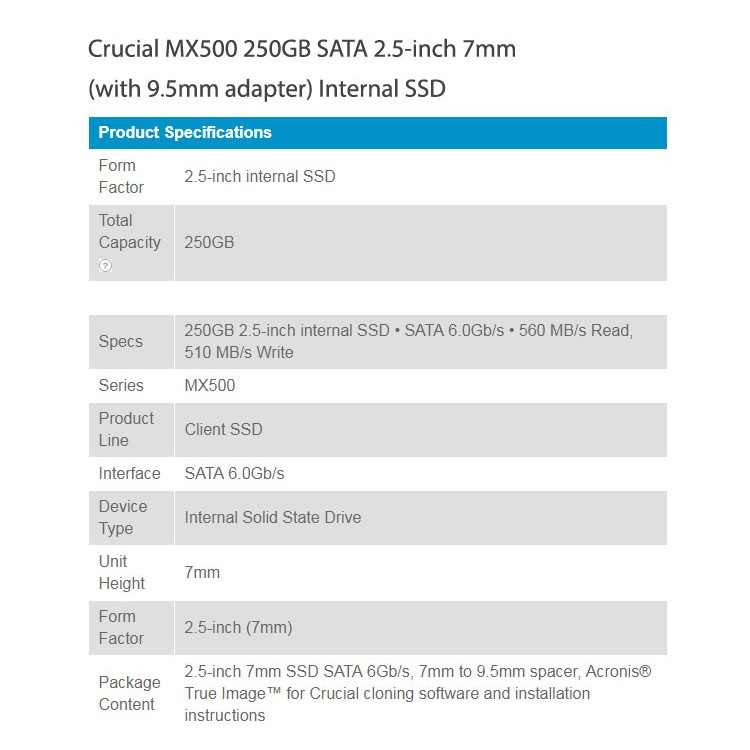 Crucial Mx500 500gb 3d Nand Sata 2 5 Inch 7mm With 9 5mm Adapter