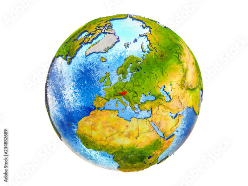 Austria On 3d Model Of Earth With Country Borders And Water In