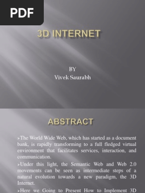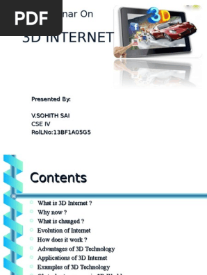 Evolution of 3d internet. 3dps evolution is comparable to the early 1990s when computers were expanding beyond large expensive corporate systems into the mass market. Conclusion provided an overview of concept of 3d internet. At this point of time we are facing an unique opportunity of evolution of internet towards much more versatile interactive and usable version ie. Today hundreds of more sinister attacks are aimed at internet.