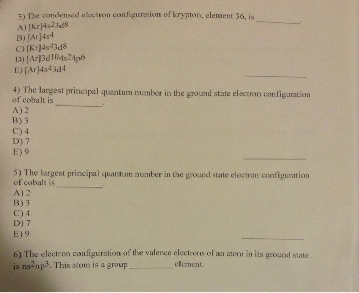 Solved The Condensed Electron Configuration Of Krypton E