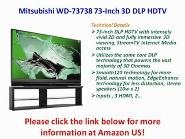 The 73 mitsubishi 3d dlp home cinema tv delivers incredible picture performance at an exceptional value hdmi pc compatiblity with picture performance that outpaces todays smaller flat panels. With picture performance that outpaces todays smaller flat panels mitsubishi 3d dlp home cinema tvs offer a larger than life intensely vivid 2d and fully immersive 3d viewing experience. In huge 73 82 and 92 class screen sizes mitsubishi 3d dlp home cinema tvs deliver incredible picture performance at an exceptional value and completely define the large screen 3d entertainment category. 73 inch dlp hdtv with intensely vivid 2d and fully immersive 3d viewing streamtv internet media access utilizes the same core dlp technology that powers the vast majority of 3d cinemas smooth120 technology for more fluid natural motion edgeenhance technology for less distortion stereo speakers 10w x 2.