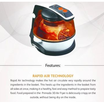 Compare top models from the latest air fryers in philippines find the cheapest newsecond hand units read reviews specifications and the latest air fryers price list at iprice. Food prepared in the primada 3d air fryer is deliciously crispy on the outside without being dry on the inside. If you are yearning for the day that you can cook without using oil the primada 3d air fryer has arrived in time to save your day. Utilizing the power of rapid air technology the primada 3d air fryer cooks its content from all sides in its basket.