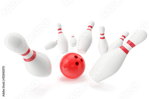 Bowling Lane With Exposed Skittles And Red Ball Under Spotlights