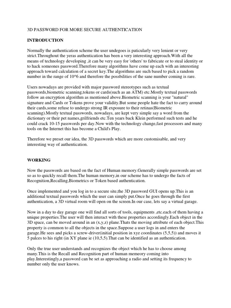 Secure Authentication With 3d Password Techpoints