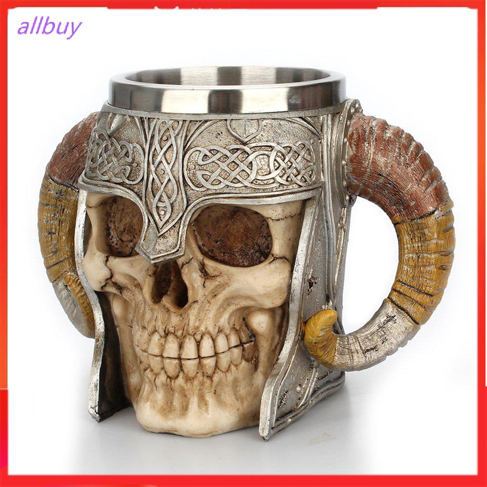 Stainless Steel 3d Skull Cup Viking Ram Horns Warrior Skull Beer
