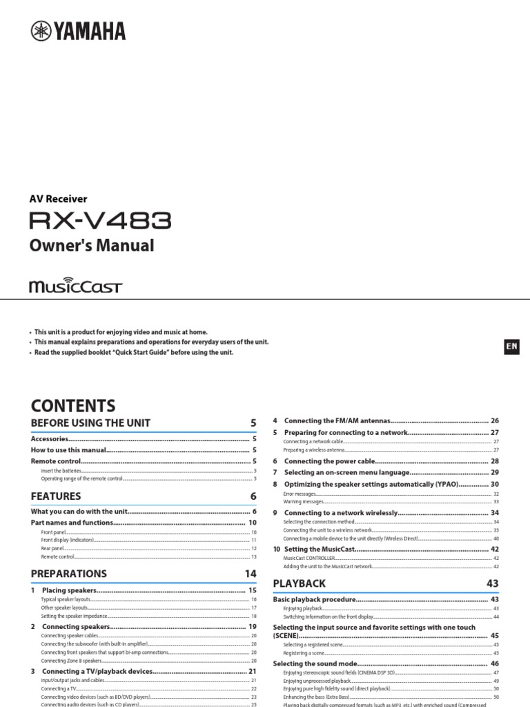 Yamaha Rx A1010 Specifications Manualzz